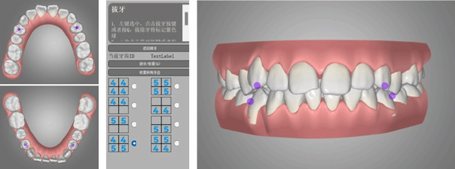 模拟正畸临床场景,在虚拟仿真系统内设计虚拟患者的个性化正畸主诉,学生结合3D可视化治疗目标(VTO),练习进行医患共同决策的正畸牙移动设计。