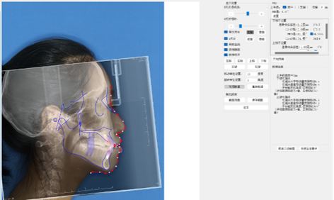 l 个性化的3D可视化正畸治疗目标(VTO)(图11):缩放大小,至牙模与侧位片重叠移动,多方向调整使重叠→显示VTO曲线,结合侧貌轮廓,确定正畸治疗的牙齿目标位。