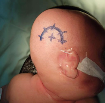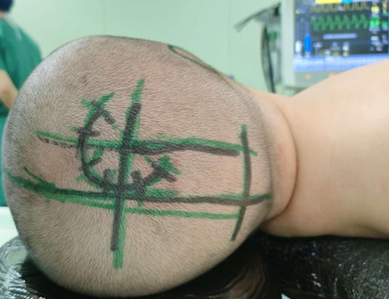 ③ 根据选择的手术入路,进行头皮定位。